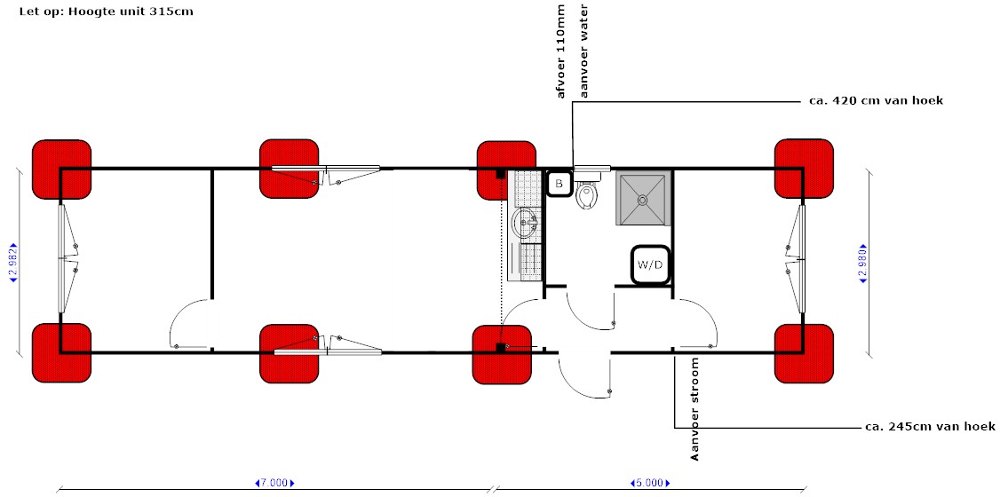 Afmeting: ca. 12 x 3 x 3,15 meter