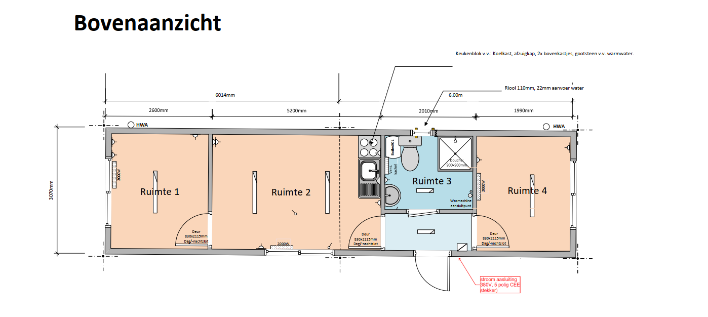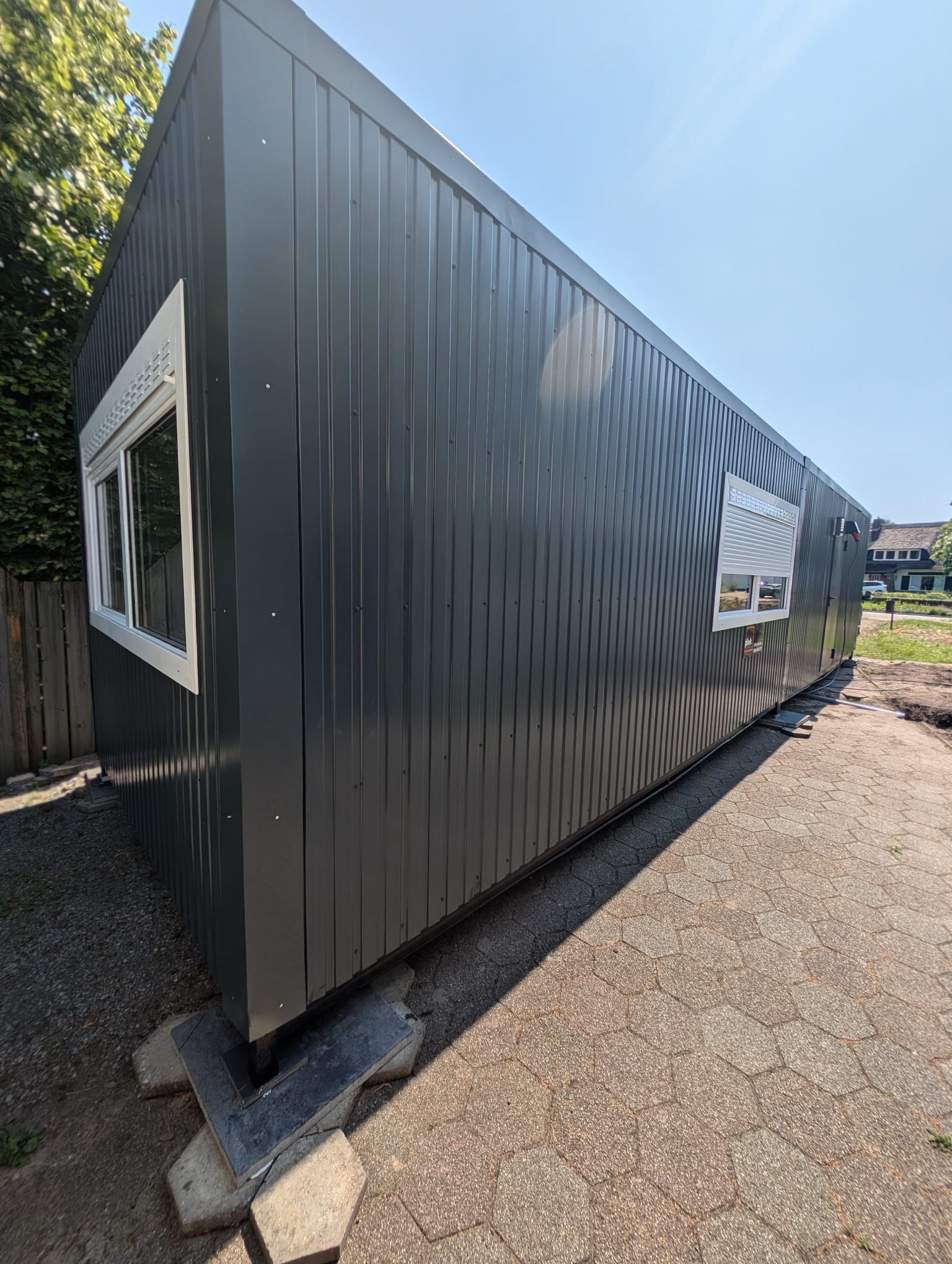 Deze woonset bestaat uit twee delen van 6x3 meter, welke op locatie bij u nog wind- en waterdicht geschakeld worden door onze monteurs.