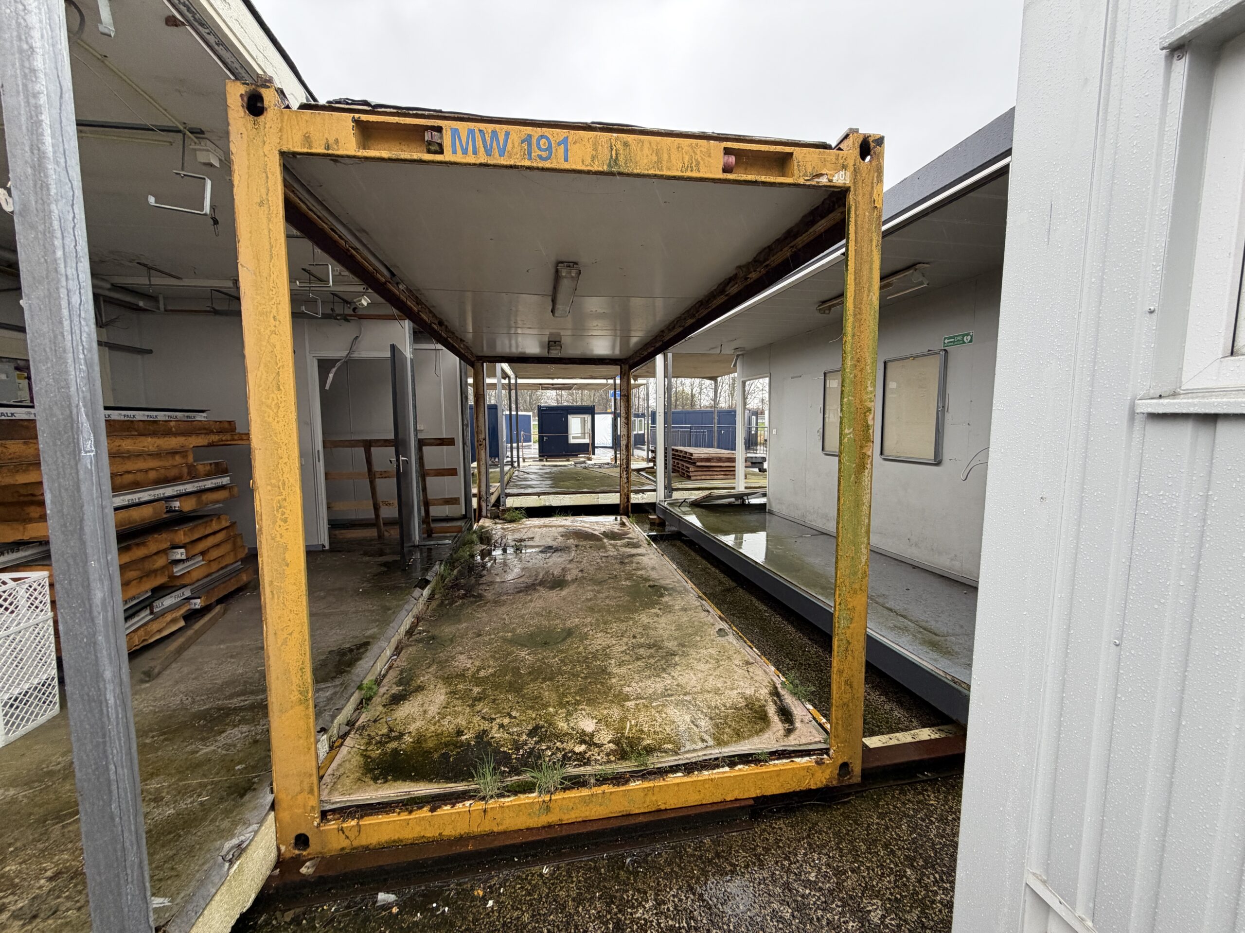 Uiterst geschikt voor ombouw tot woongebouw of kantoor-unit. De frames zijn schakelbaar en stapelbaar.