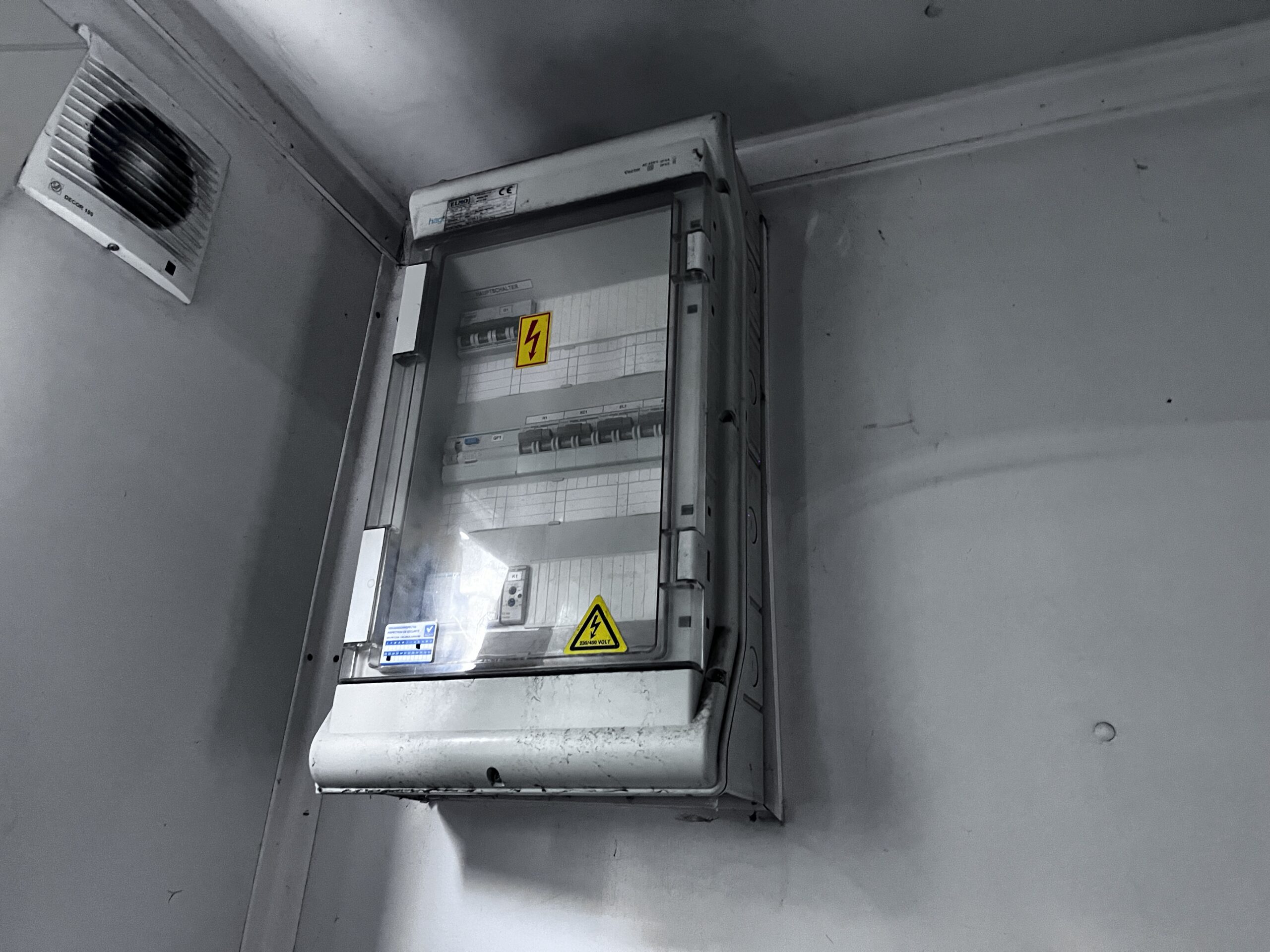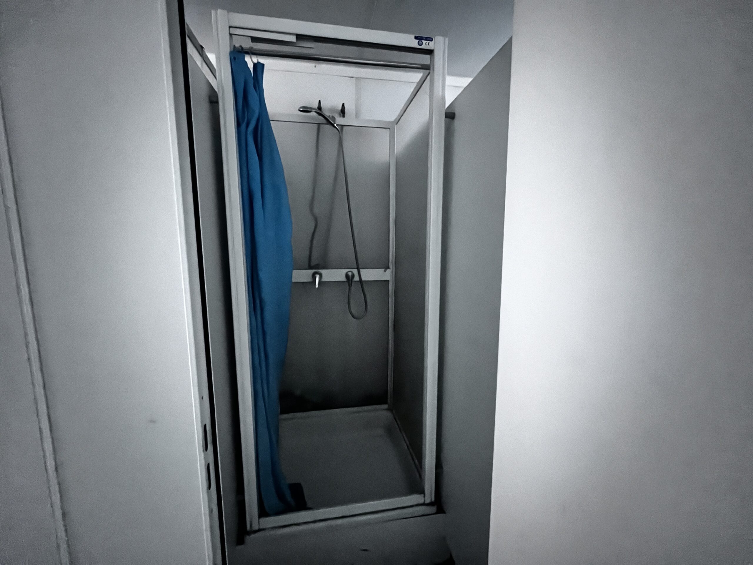En 150l boiler; 2 douches, 2 toiletten, 4 wasbakken met zeepdispensors en spiegels, sanitair raam, convector.