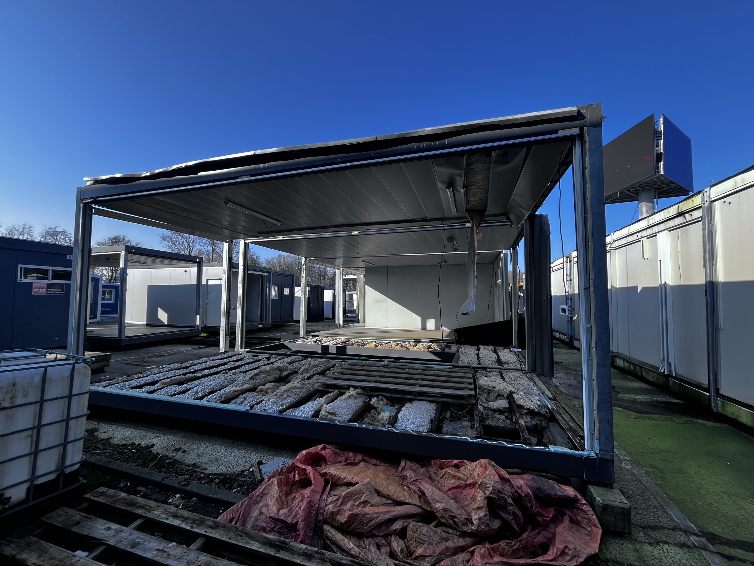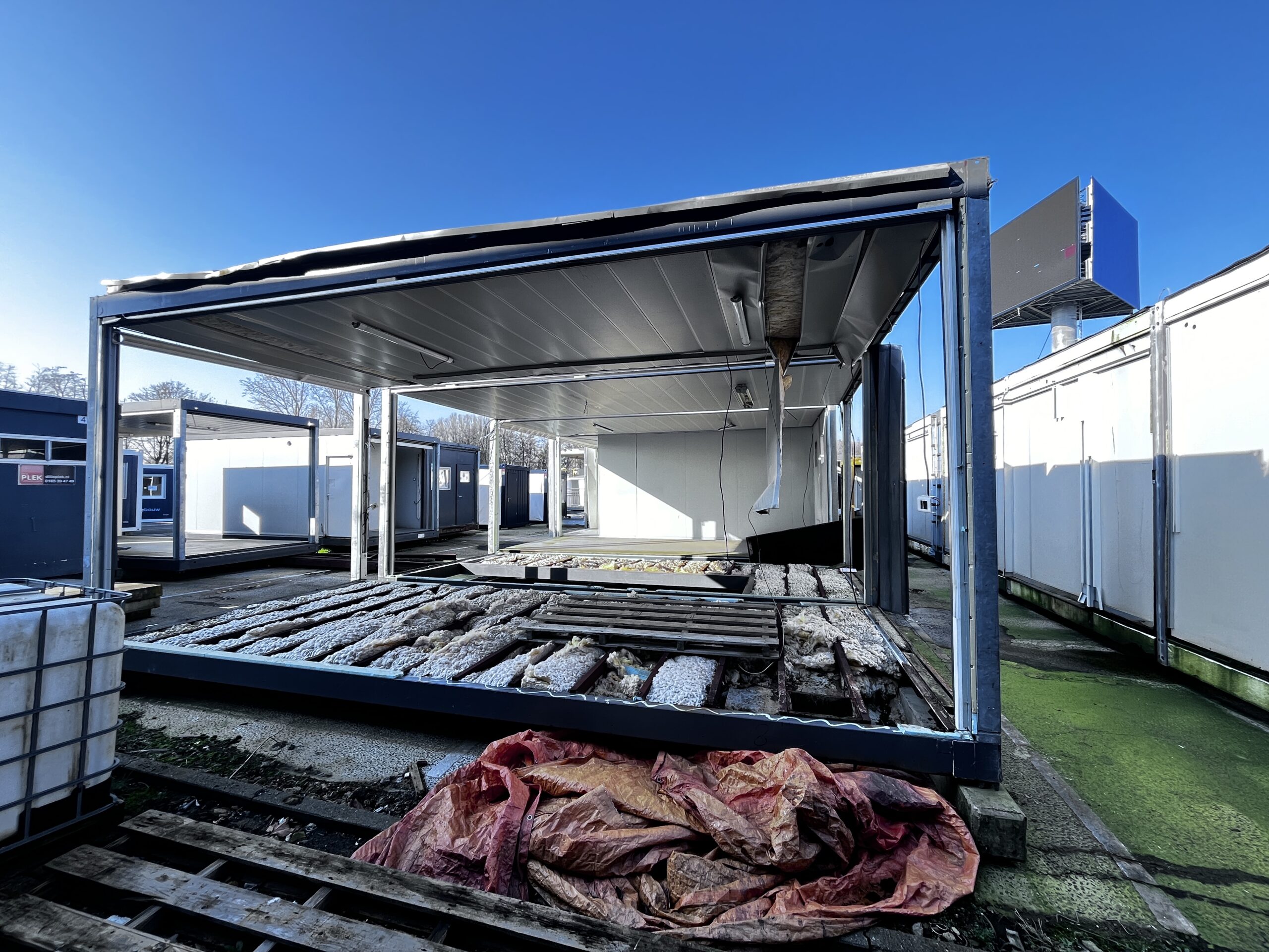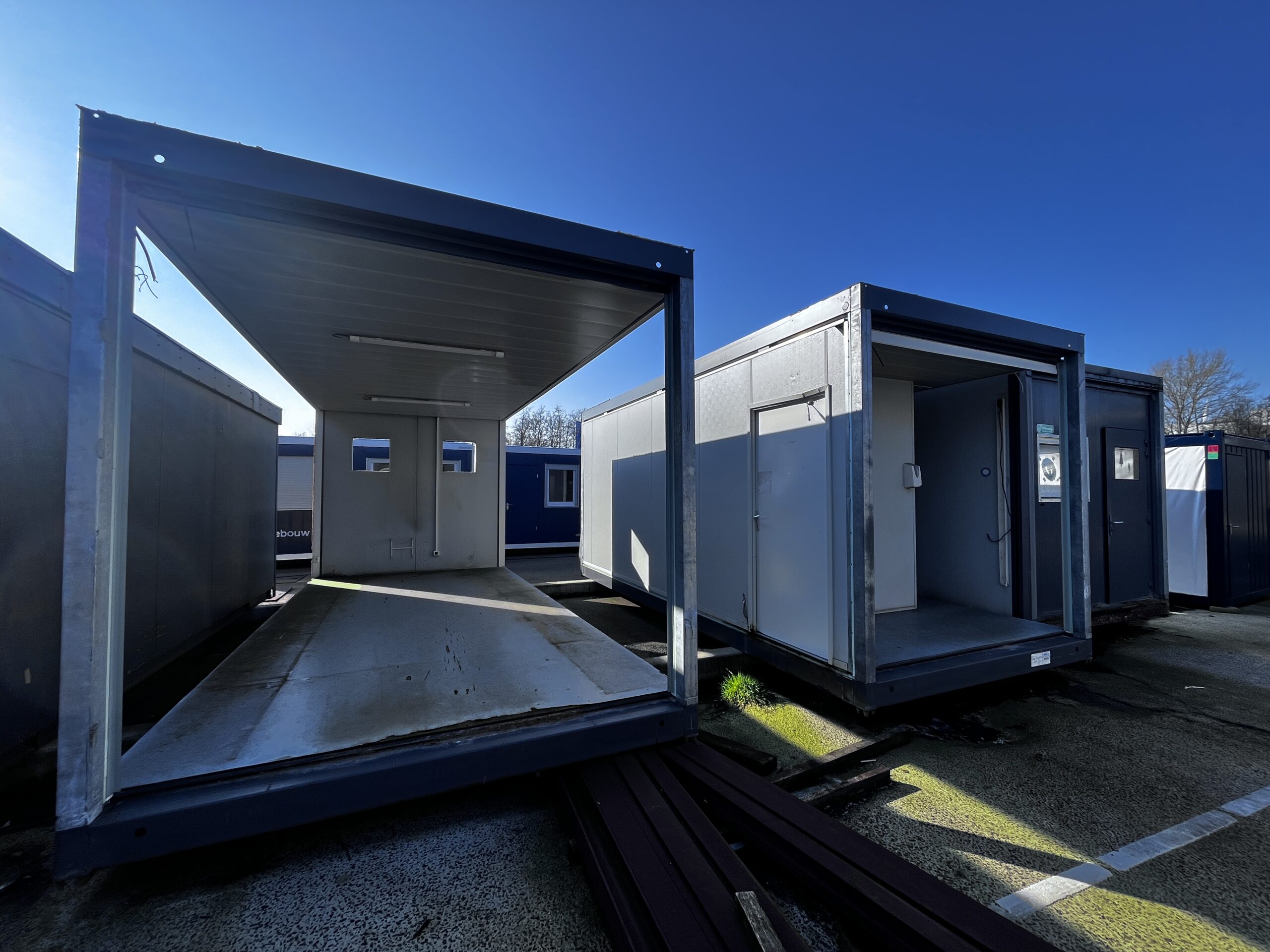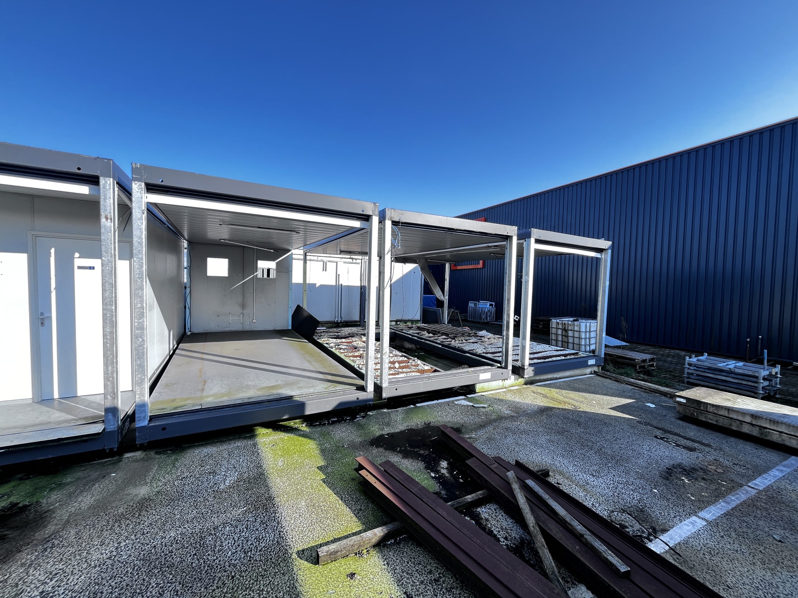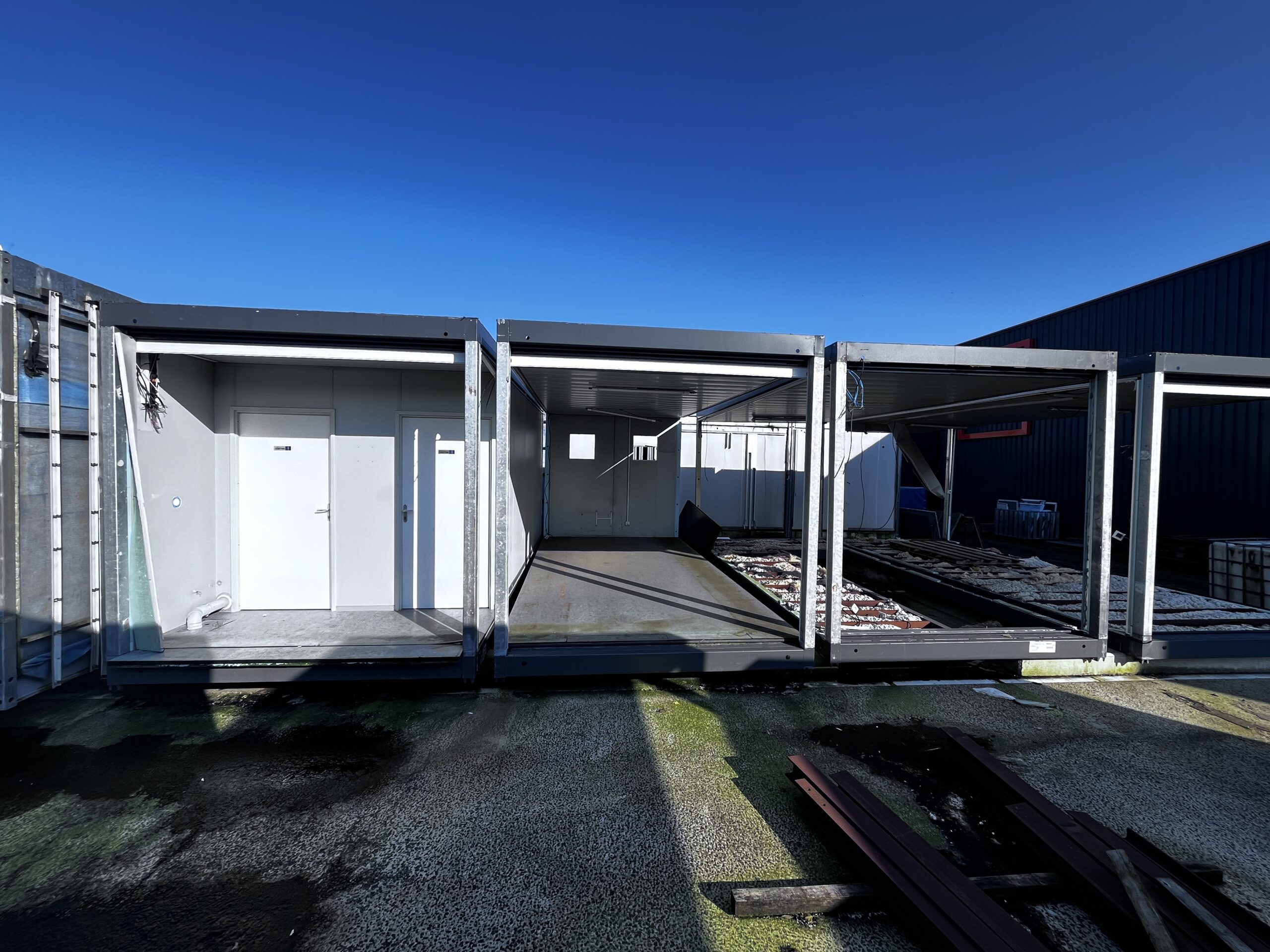 Uiterst geschikt voor ombouw tot woongebouw of kantoor-unit. De frames zijn schakelbaar en stapelbaar.
